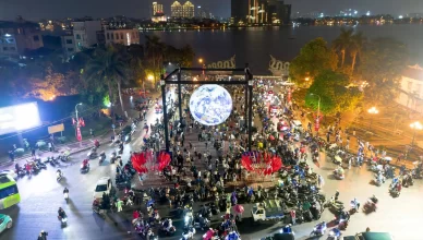 Khách đổ xô check in quả cầu lơ lửng ở Hồ Tây