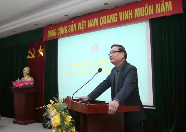 NSNA Nguyễn Văn Toản, Chủ tịch Hội nhiếp ảnh Nghệ thuật Hà Nội đọc báo cáo tổng kết